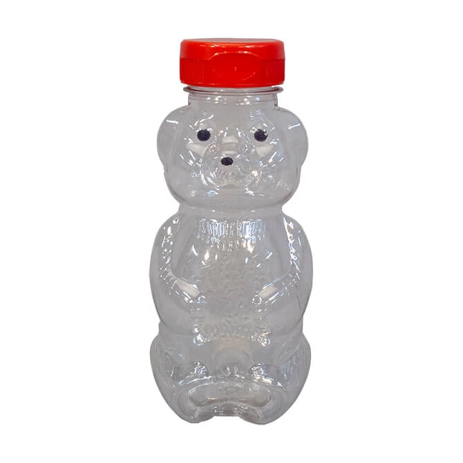 Fill up his tummy and watch these honey bears fly off the shelves! Our 12 ounce round belly honey bear bottle is made out of clear plastic and goes great with our bear collars or jar top labels.