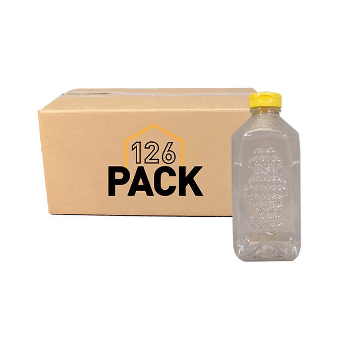 The eye-catching hexagonal design on this 3lb. embossed honey jar will attract customers at the Farmers’ Market! This big jar features double-indented handles for easy pouring and handling of your honey. Available with your choice of Hi-Flow Spouts, Flip top Lids, Dripless Lids, or plain white caps. Cap colors cannot be mixed. A small oval label looks great across the bottle face.