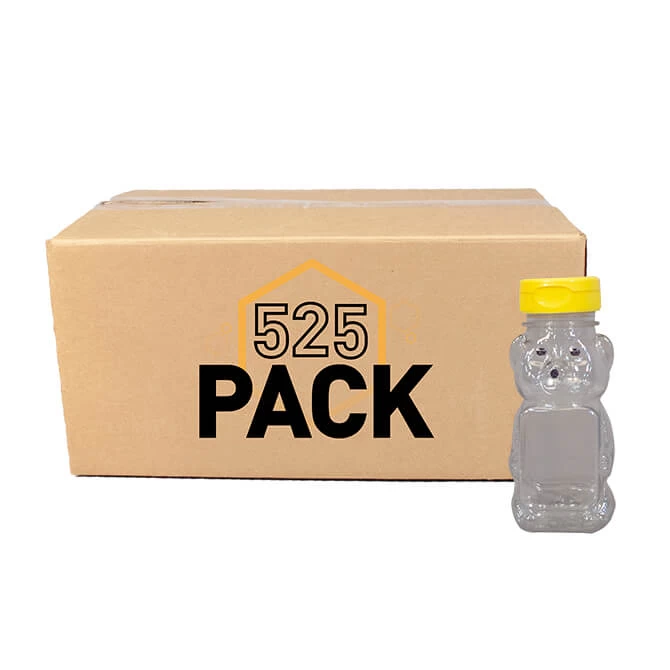 These adorable flat panel bears are an age-old classic for honey bottling. Each container has two flat panels, perfect for a custom honey label and a nutrition label. For an additional cost, these bears are available with your choice of hi-flow spouts (black, yellow or red), flip-top lids (black, red, yellow, gold or white), dripless lids (red, black or yellow) or standard white caps. The front panel measures 1-13/16 inches tall and 1-1/2 inches wide.
