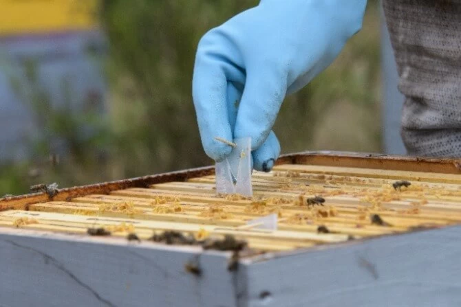 - For information on checking for mites, see Randy Oliver’s website, www.scientificbeekeeping.com, for mite sampling methods and thresholds.