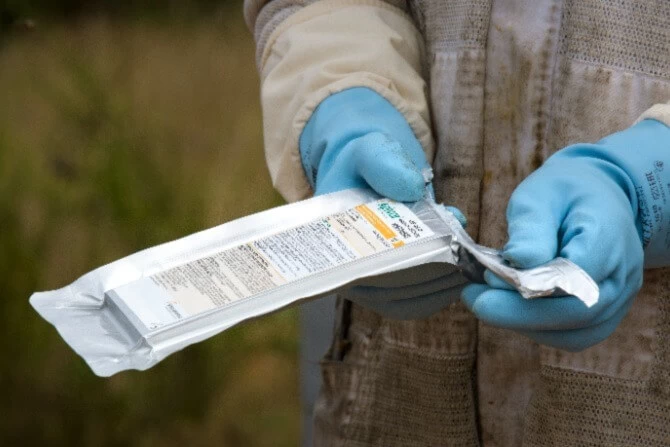 Varroa destructor mites (an external parasite) weaken honey bees and can lead to the demise of your hive if left untreated. Kick off your treatment with Apivar, an amitraz-based (synthetic pesticide) that works by hanging two strips between frames, per brood chamber, and leaving in place for 42 days, then removing. This treatment is proven safe and effective without leaving any significant chemical residues in honey or wax.