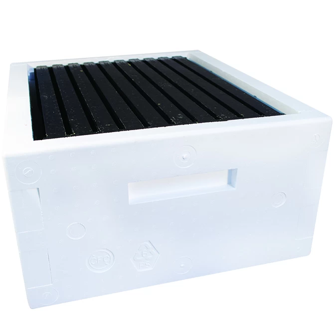 Made of lightweight polystyrene with an impressive R-value of 6.5, honey bee colonies have a better chance at overwintering in extreme northern temperatures, and staying cool in the hot summer months.