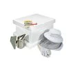 This is the same hive as featured in the basic beginner’s kit and includes a complete hive with single deep hive body. The assembled kit includes plastic frames. The unassembled kit features wooden frames and waxed plastic foundation.