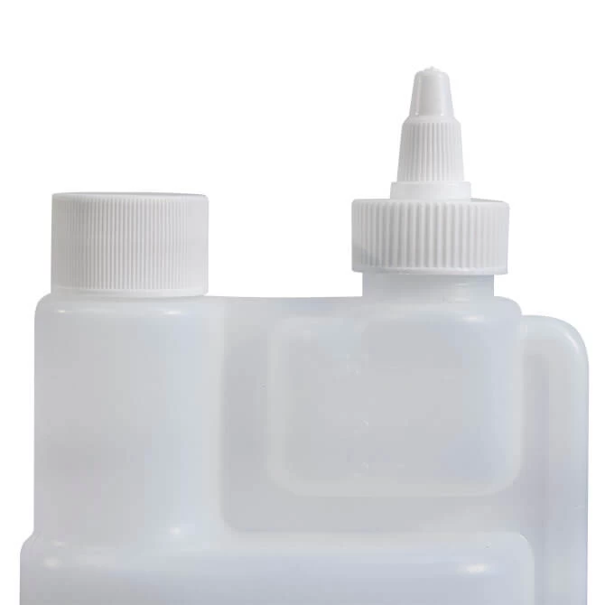 Never worry about how much to dribble again! This 16 oz. plastic dispensing bottle features a 1 oz. (30mL) dispensing chamber with a 5mL mark to make measurements easy.