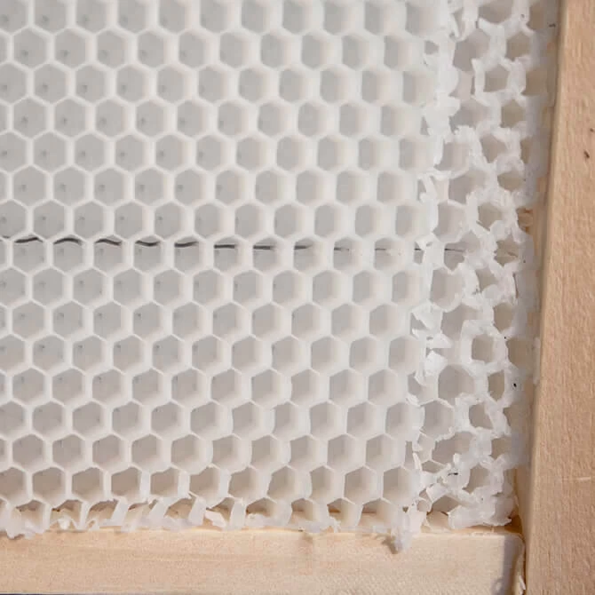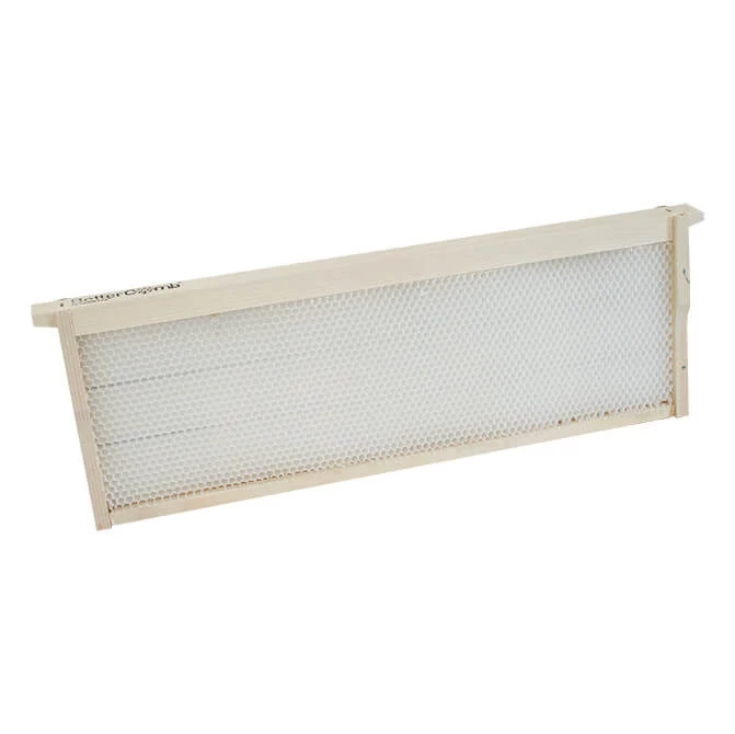 The holy grail of beekeeping: ready-to-use drawn frames! BetterComb is a completely drawn comb made of food-grade, virgin, synthetic wax, similar in composition to beeswax. Unlike regular foundation, BetterComb does not need to be drawn out by the bees. These pre-assembled and embedded BetterComb frames are ready to be installed in a hive. BetterComb provides bees instant access to space for brood or nectar without needing time and resources to draw out comb. BetterComb can significantly benefit both packages and nucleus colonies, as well as established hives.
