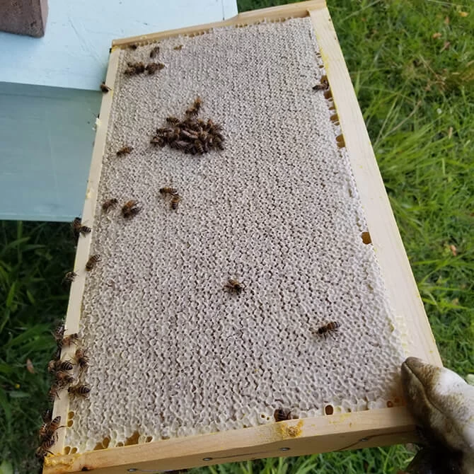 Bees use BetterComb as they use any other comb once they become acquainted with it. Queens will lay eggs and raise brood in the BetterComb, and workers will store pollen and nectar in it. Bees will repair and adjust the comb just as they do with real comb.