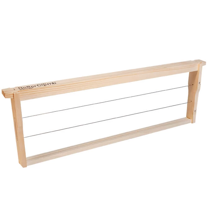 Whether you have followed the latest innovations and adopted Better Comb synthetic wax comb or you are sticking with the tried and true no-hook wax foundation, this pre-wired frame will offer all the support you need. Both ends of the wire are anchored on one side bar for easy heating and embedding using our BetterComb embedding device (not included).