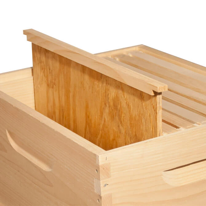 If you are using 8 frames inside of a 10 frame hive body, or need to reduce your frame count below the hive’s designated size, you should introduce follower boards so that you can then space the remaining frames closer together. If frames are too far apart, bees will build comb outward in a more dome like shape to reduce space