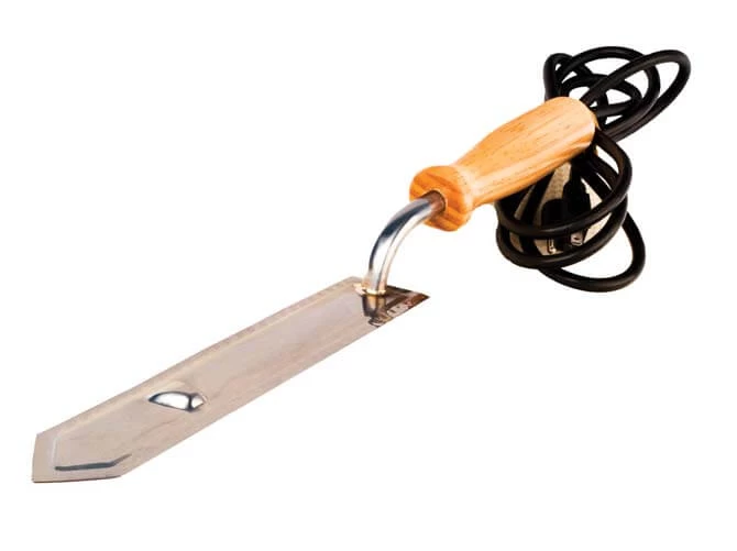 As smooth as buttering toast. This American made electric uncapping knife applies even heat to wax cappings making for easy removal from frames. A turned wood handle offers comfortable grip while staying cool to the touch.