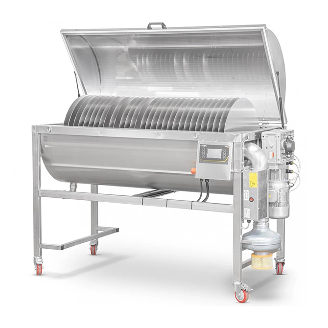 Honey with moisture levels greater than 19% will ferment and is not salable. The dehydrator removes water from honey as a batch process using warm air and rotating plates. The machine features adjustable rotation speed and adjustable heat input. A color LCD screen and control panel gives the operation control of the process.