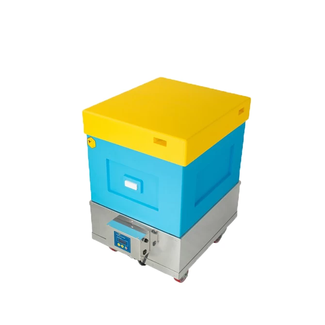 Crank up the heat without touching your thermometer. This heavy duty, stainless steel, honey super warmer, takes your 10 frame super and through a heating element and fan, pushes warm air through your frames, warming honey, and leading to easy honey extraction.
