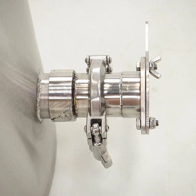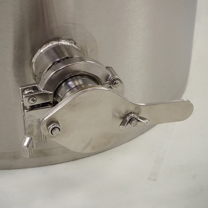 The outlet of the tank features a sanitary coupling which can be easily coupled to a honey gate (included), or a variety of other accessories such as a bottling valve, ball valve, barbed fitting, etc.
