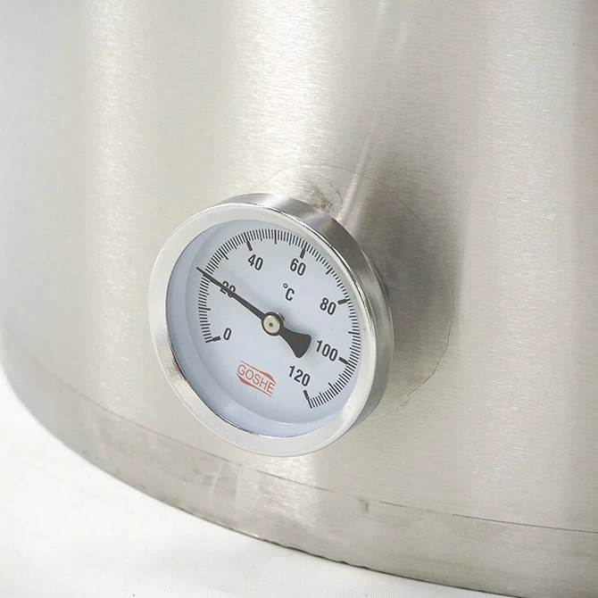 The water jacket is heated by a 240V AC 2000 watt replaceable heating element, and is thermostatically controlled by a simple analog temperature knob. A temperature indicator is provided to monitor the water jacket temperature.