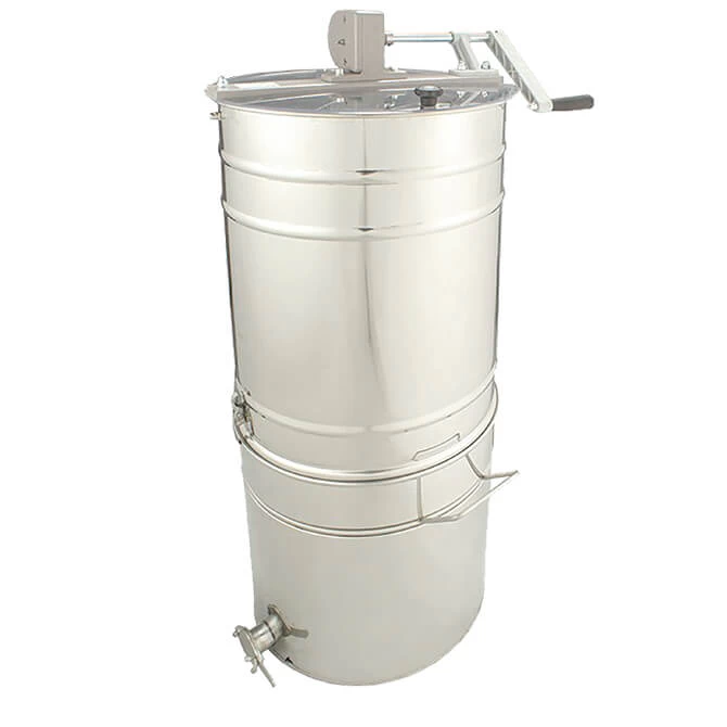 - 25 gauge stainless steel drum with basket: Four large holes on the bottom of the drum allow honey to flow through the filter and into the tank