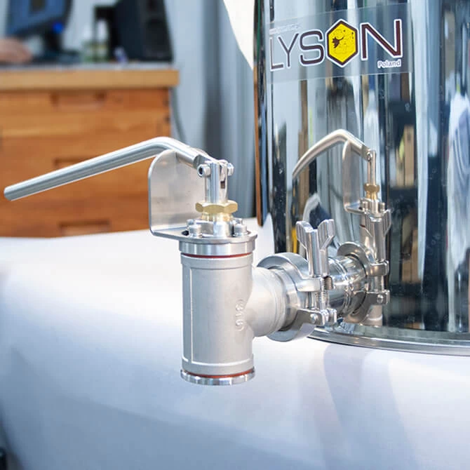 The valve’s 1.5″ sanitary fitting connects directly to any tank with a 1.5″ sanitary fitting. This includes newer Lyson bottling tanks and Lyson premium bottling tanks.