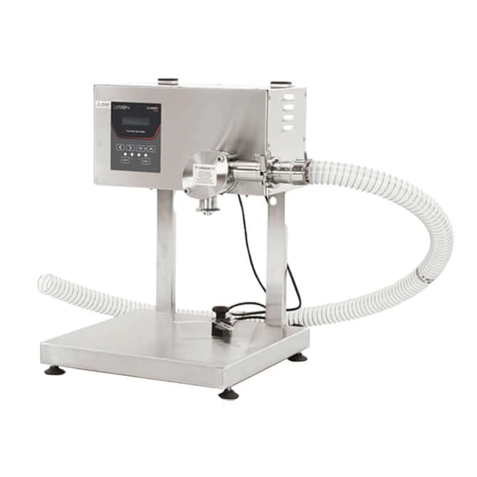 The Lyson honey bottler uses a flexible impeller positive displacement pump to accurately dispense honey. All of the surfaces that come in contact with honey are stainless steel or food safe plastic, and are all easy to clean.