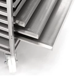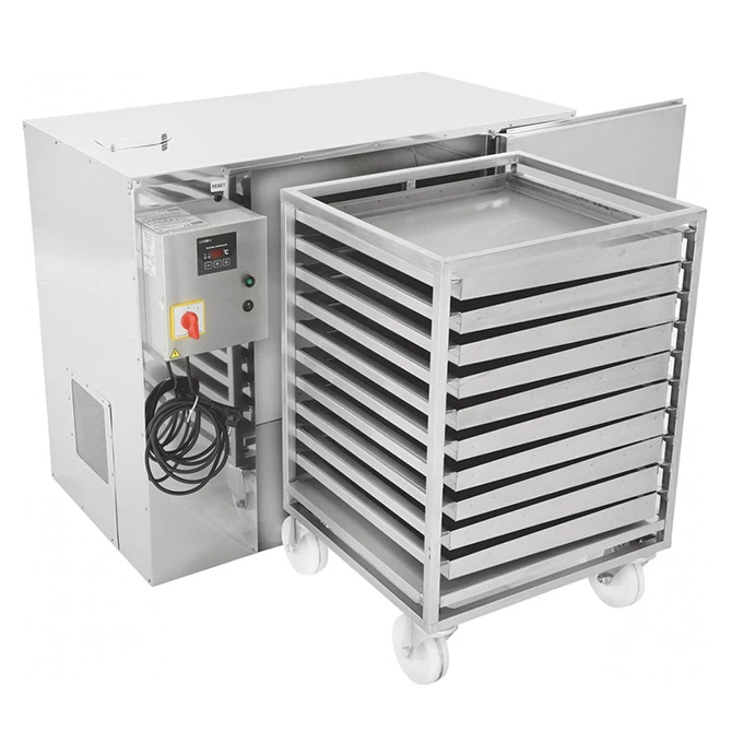 This acid-resistant stainless steel pollen dryer comes equipped with 10 drawers and consists of two elements: a heating cabinet and a trolley with pollen trays. Can dry up to 30 kg (66 lb.) of pollen at one time.