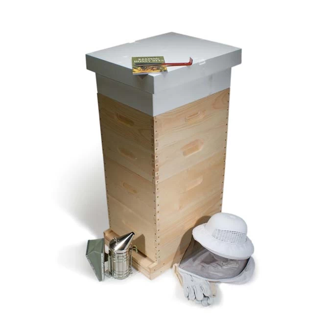 This beehive kit also includes our Betterbee Jacket and a pair of gloves to keep you covered as well as a smoker, hive tool, and a great book!