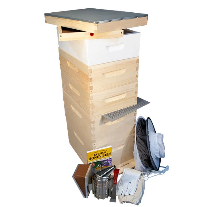 This beehive kit also includes our Betterbee Jacket and a pair of gloves to keep you covered as well as a smoker, hive tool, and a great book!